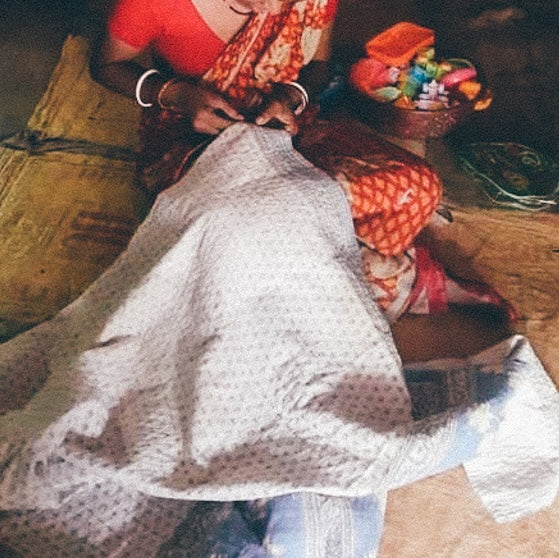 Experience the exquisite craftsmanship of our Kantha blankets, lovingly hand-stitched in India's Bengali region using the traditional "Kantha" art form. Crafted from layers of upcycled Saris, these blankets are not just eco-friendly; they're also a testament to the expertise of our artisans.